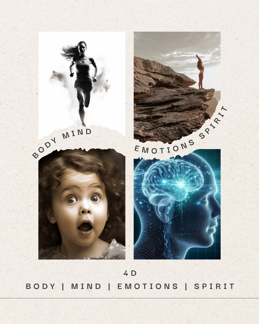 4D Coaching method looks at all effective and contributing factors encompassing physical body, mindset, emotions and energetic system.